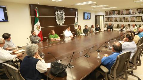 La Dra. Maki Esther Ortíz Domínguez, sostuvo una reunión con autoridades sanitarias, Cámaras, dirigentes sindicales y de sectores productivos, en la que se acordó reforzar las medidas y las disposiciones de salud, para prevenir contagios por COVID-19 en Reynosa, luego de presentarse un caso positivo y uno sospechoso en esta ciudad.