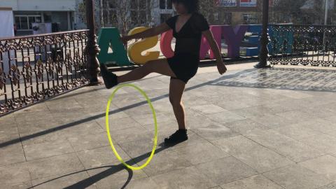Con la finalidad de acercar las artes circenses a la población reynosense, la artesana, bailarina y acróbata, Maribel González, invitó al público en general a las próximas clases de aro que impartirá en el kiosko de la Plaza Principal, Miguel Hidalgo.Originaria de León, Guanajuato, Maribel González llegó a Reynosa con la finalidad de visitar a su madre y vender sus artesanías fabricadas con auténticos cuarzos, y de manera improvisada, ofreció una clase muestra a un grupo de chicas la tarde de este miércoles.