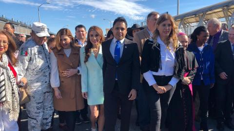 Con mariachis, polkas y charros, el Gobierno Municipal recibió a sus homólogos del Valle de Texas, para efectuar el Tradicional Abrazo entre Alcaldes, protagonizado por segunda ocasión por la alcaldesa, Maki Ortiz Domínguez, y Sergio Coronado, Mayor de Hidalgo.